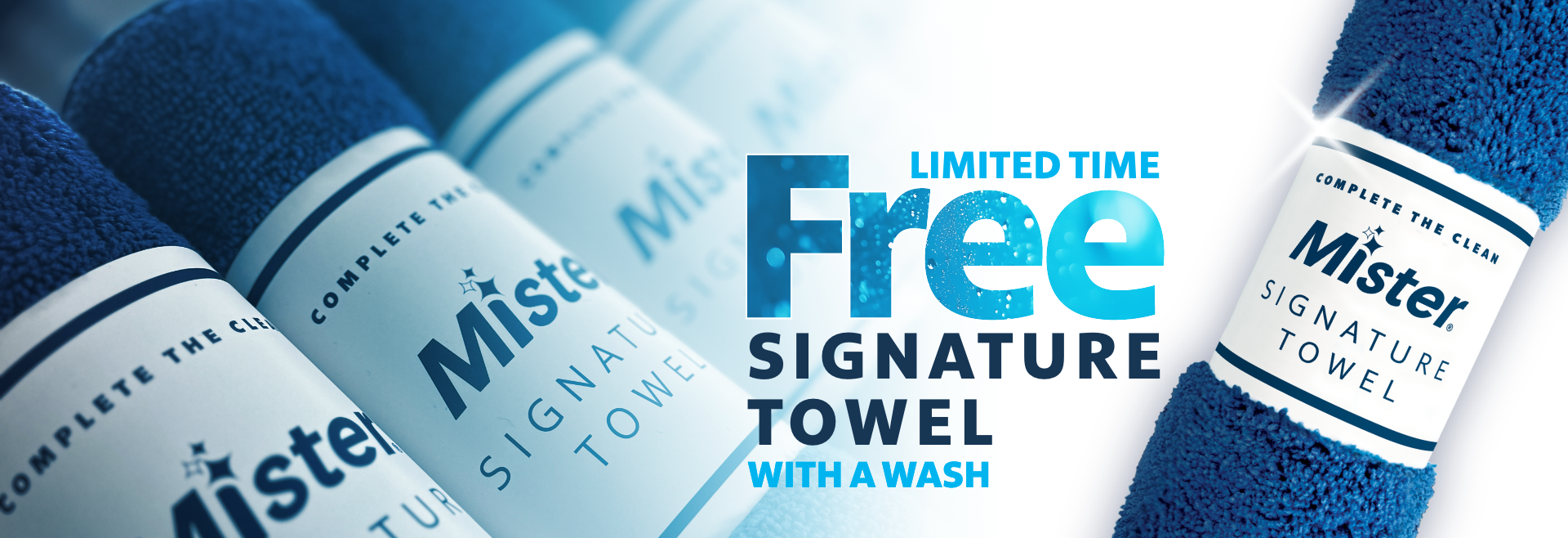*Offer valid until April 30, 2026. Receive one (1) free towel with the purchase of any single wash. Offer valid while towel supplies last. Towel will be provided at the time of purchase and no later than the offer expiration date. No cash value. Offer cannot be combined with any other offers or discounts. Limit one (1) per customer. See store for complete details. Additional terms and restrictions may apply. Promotion Terms. By providing your email address and clicking Get Offer you agree to receive promotional emails from Mister Car Wash Privacy Policy.
