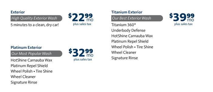 Pricing and plans are subject to change. Continued use of your membership constitutes your acceptance of the Unlimited Wash Club® Membership Plan Terms